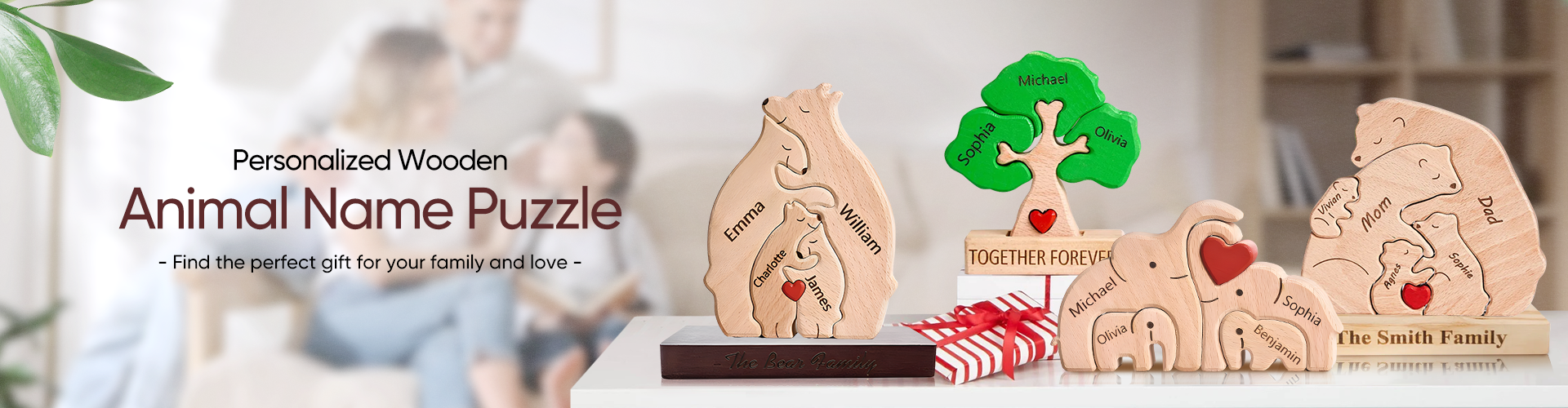 47% OFFPersonalized Wooden Fox Custom Family Member Names Puzzle Home Decor Gifts -