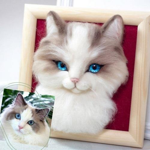 28% OFFCustom Realistic Needle Felting Cat Portrait, Felt Cat Portrait in Frame, Pet Lover Gift -