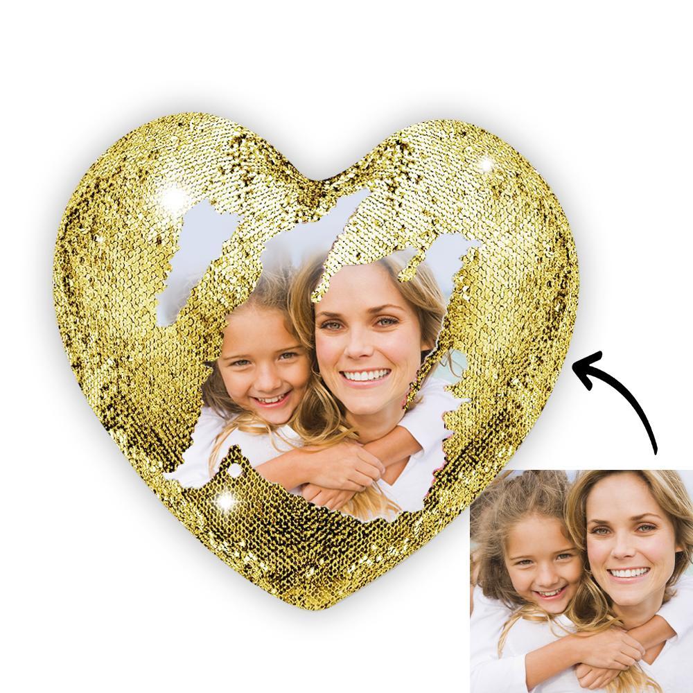 57% OFFCustom Photo Magic Heart Sequins Pillow Gold -