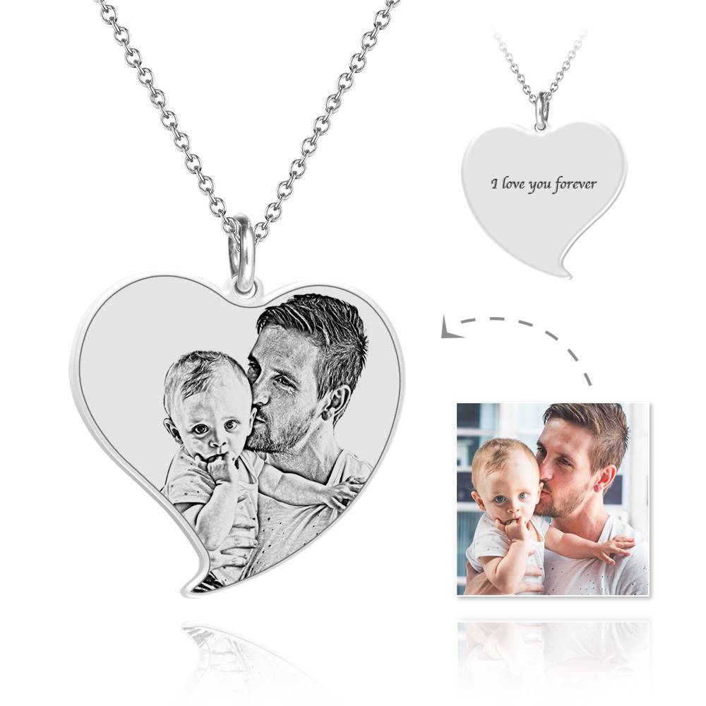 56% OFFWomen's Heart Photo Engraved Tag Necklace with Engraving Silver -