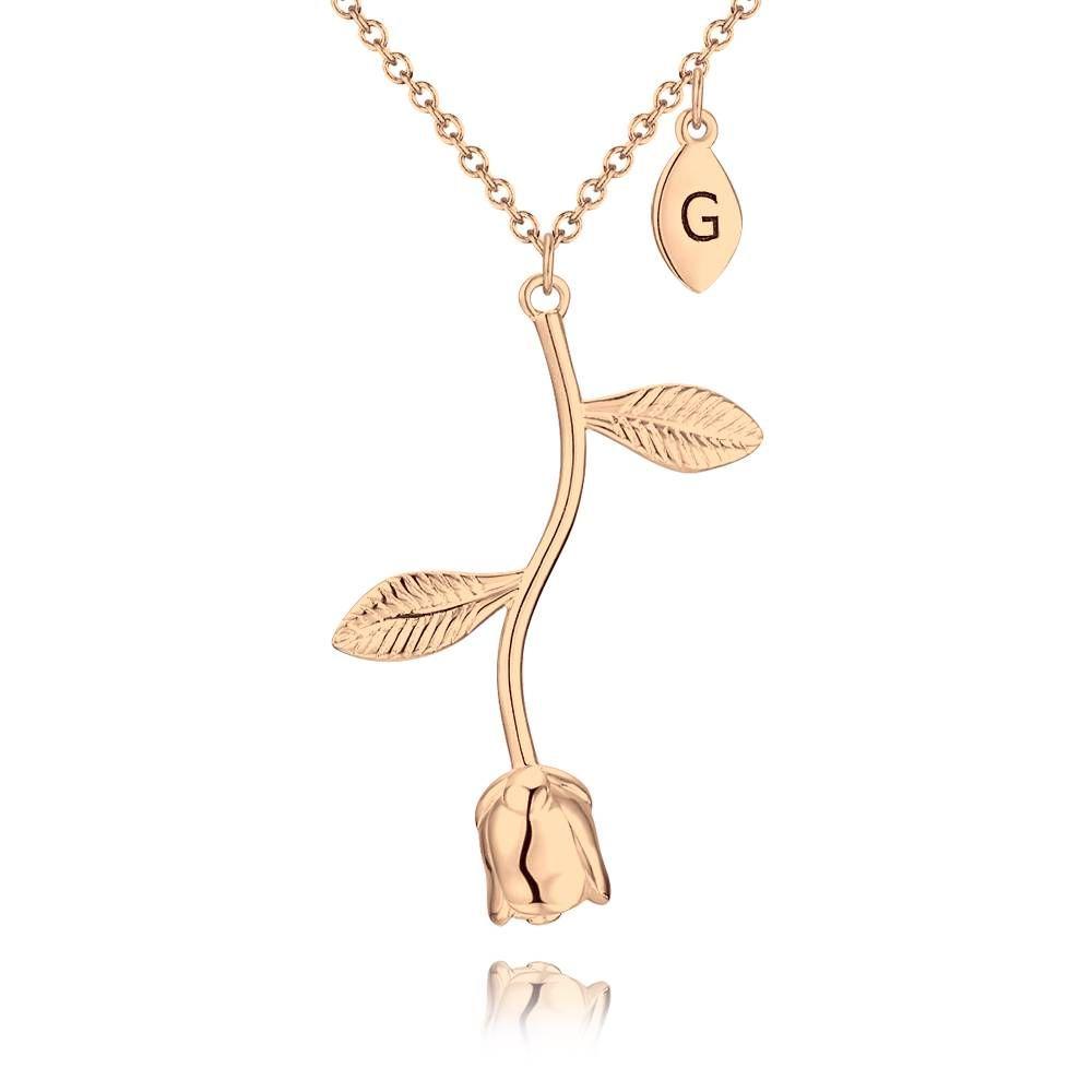 68% OFFInitial Necklace, Rose Necklace for Women Summer Jewelry Rose Gold Plated - Rose Gold -