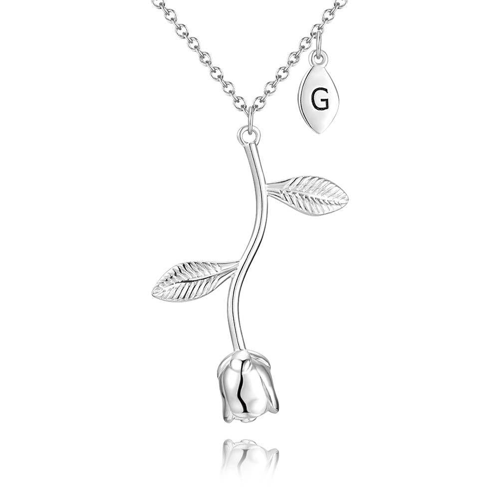 68% OFFInitial Necklace, Rose Necklace for Women Summer Jewelry Platinum Plated - Silver
