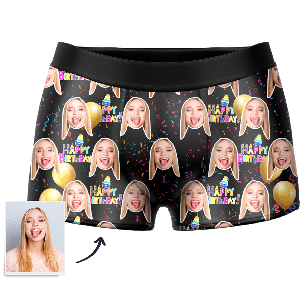 50% OFFCustom Photo Boxer,Happy Birthday Face Underwear - Men