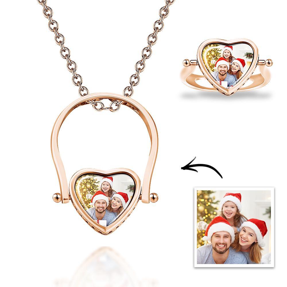 50% OFFCustom Photo Necklace, Photo Ring Couple's Gifts Dual-use (Ring Size 5#) Rose Gold Plated -