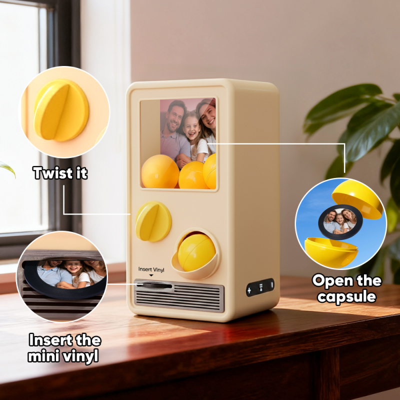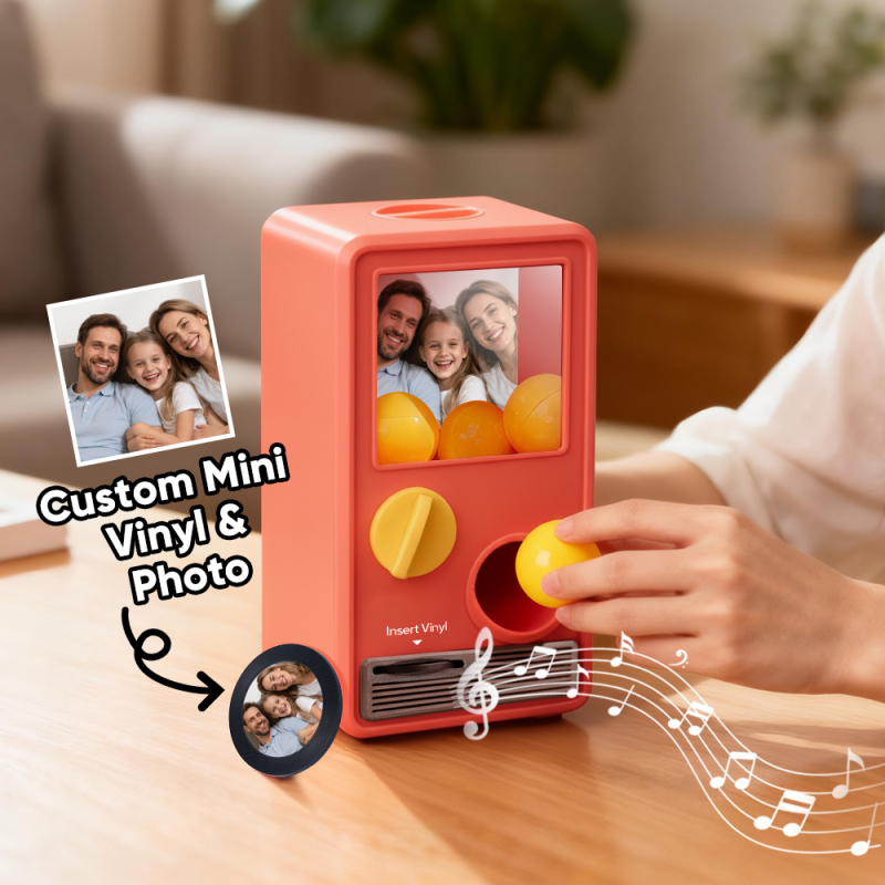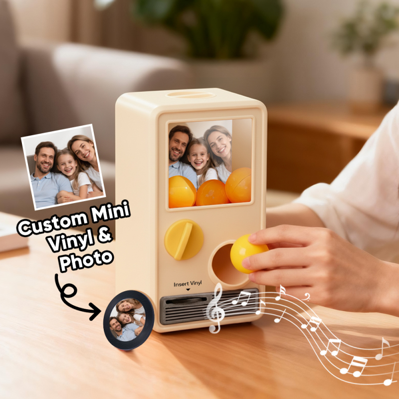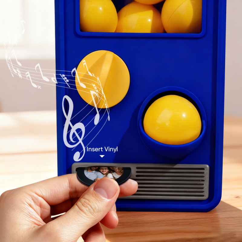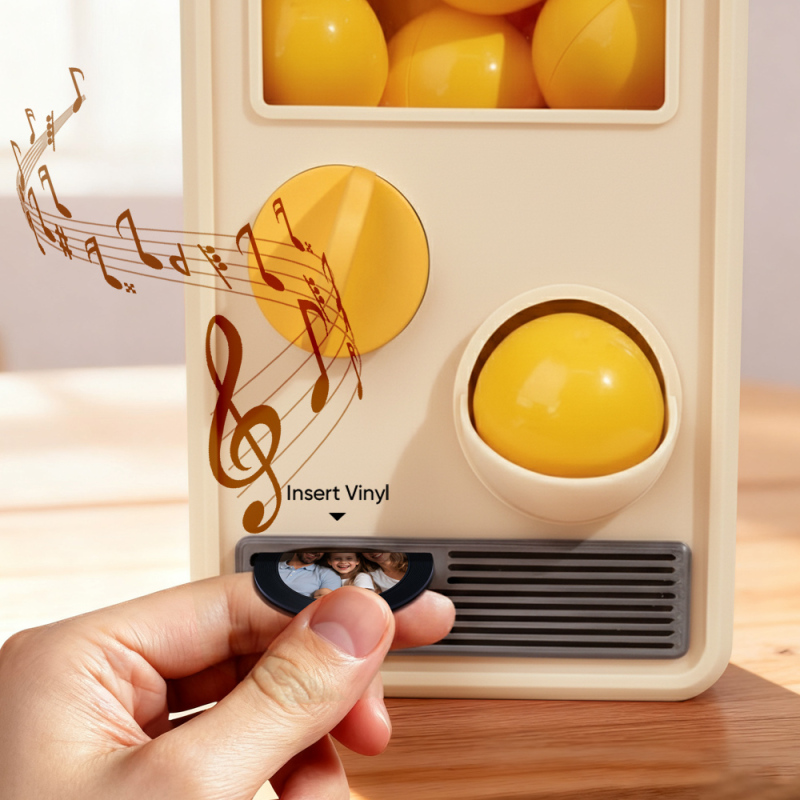 Discover the joy of music and surprise with our Music Gachapon Machine! Modeled after a classic toy capsule dispenser, this charming unit holds up to 7 gachapon balls—each containing a unique, customizable CD record inside. Personalize every disc with a special song and a photo that holds meaning, then let the machine bring your creations to life with instant playback.