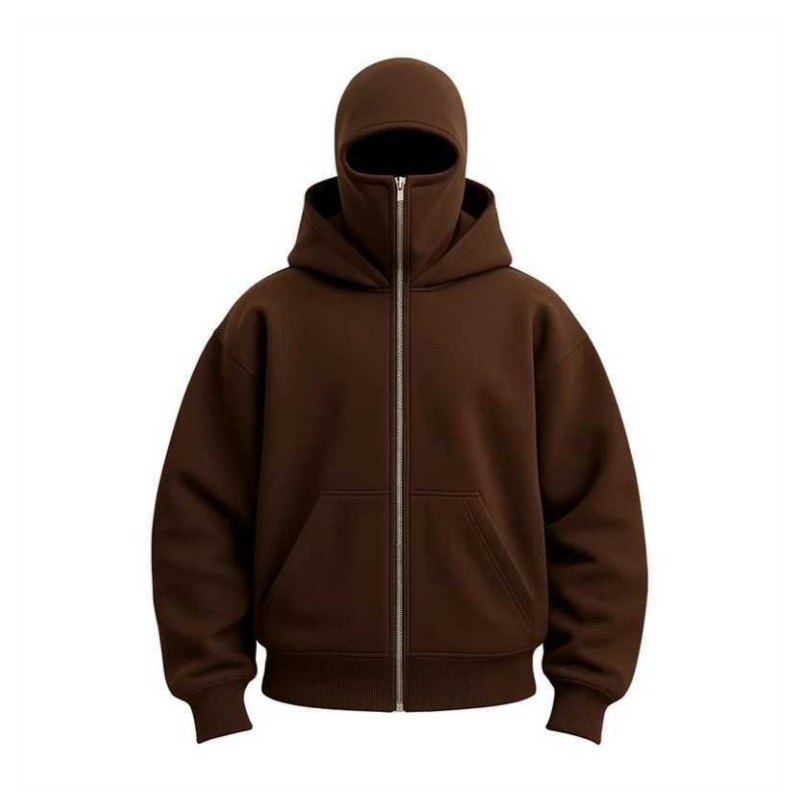 Stay warm, protected, and effortlessly stylish with this 2-in-1 Menâs Zip-Up Mask Hoodie.