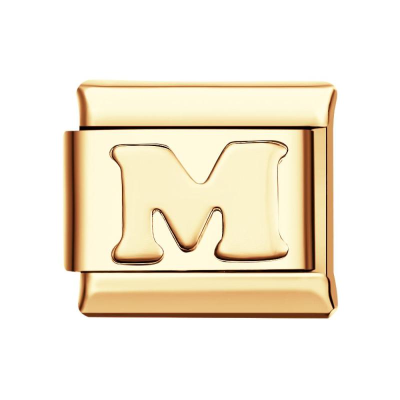 Alphabet M-Gold Italian Charm For Italian Charm Bracelets Composable Link