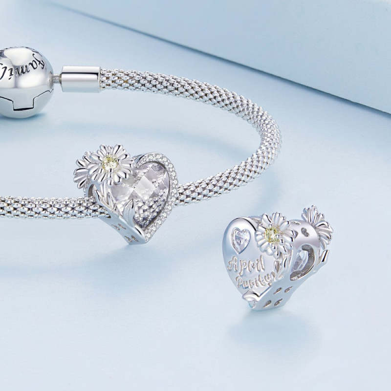 April Birthstone White Charm Silver