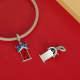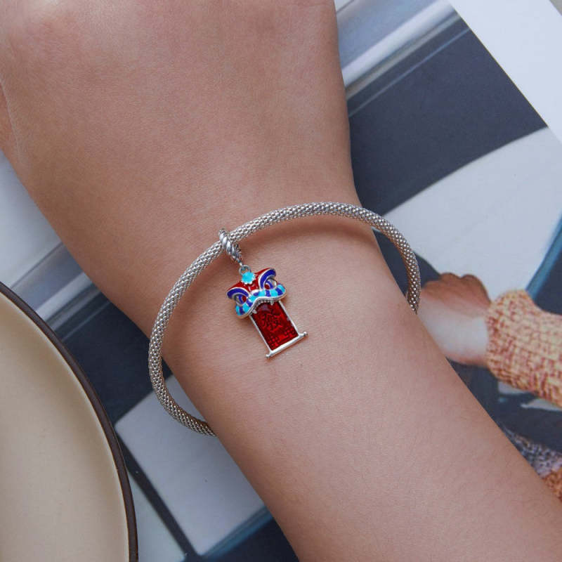 Awakening Lion with Red Rich Sign Dangle Charm Silver