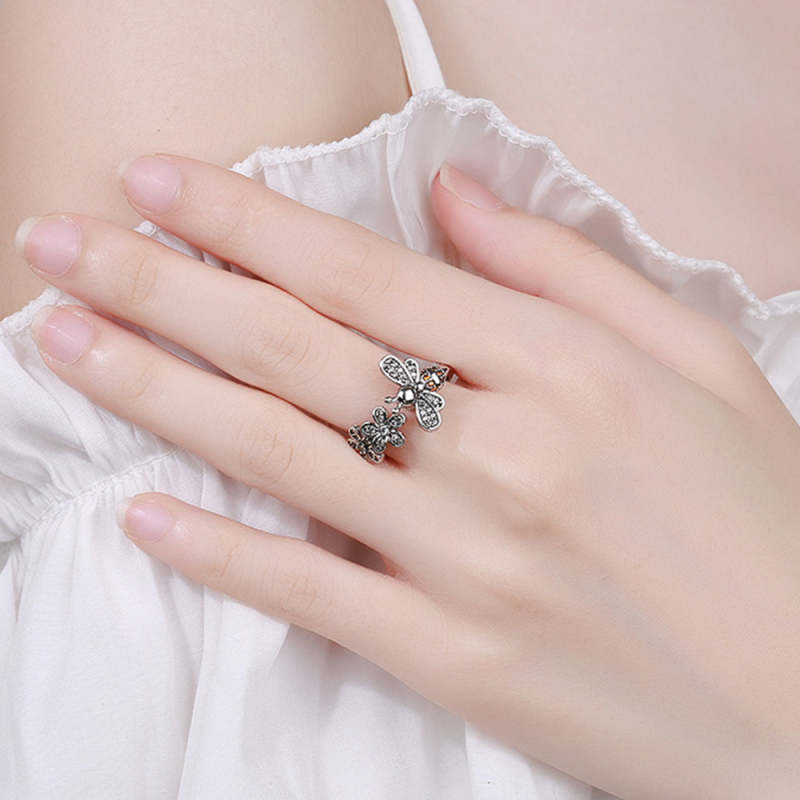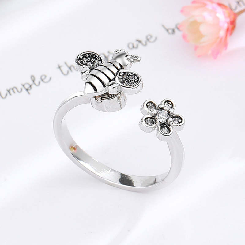 Bee Daisy Adjustable Fidget Ring for Anxiety Rotating Anxiety Ring Jewelry Gift for Her