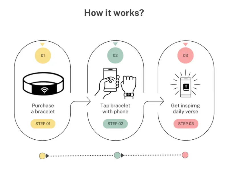 NFC technology: Each bracelet is embedded with an NFC chip that accesses on your phone . With just a tap of your smartphone, you can scripture, and other uplifting resources.