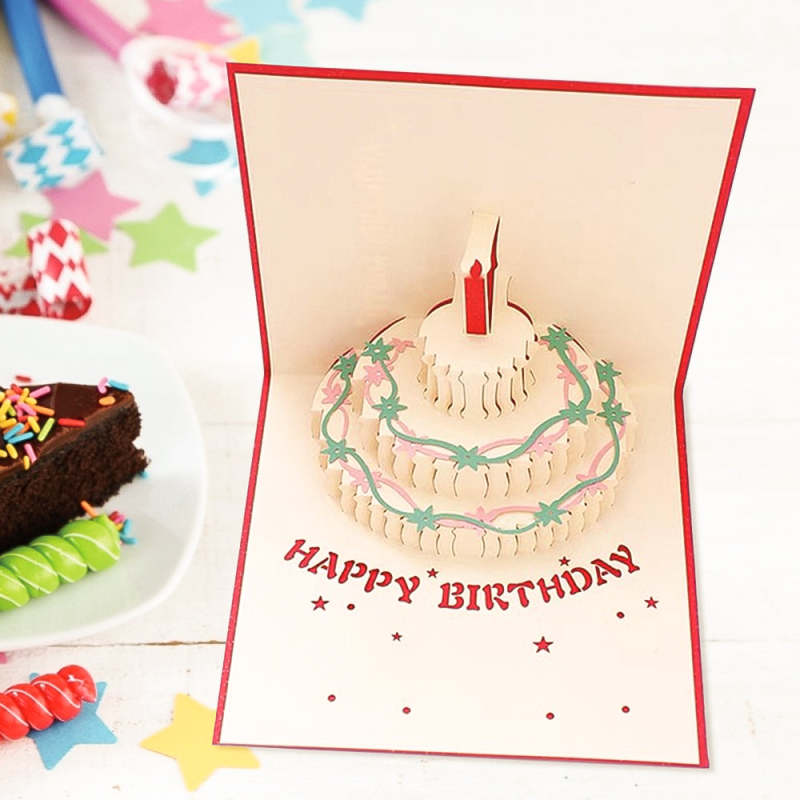 Birthday Card Color Cake Red Pop-up Card 15*15cm