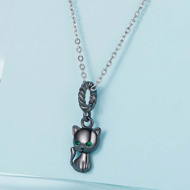 Black Cat Dangle Charm Silver