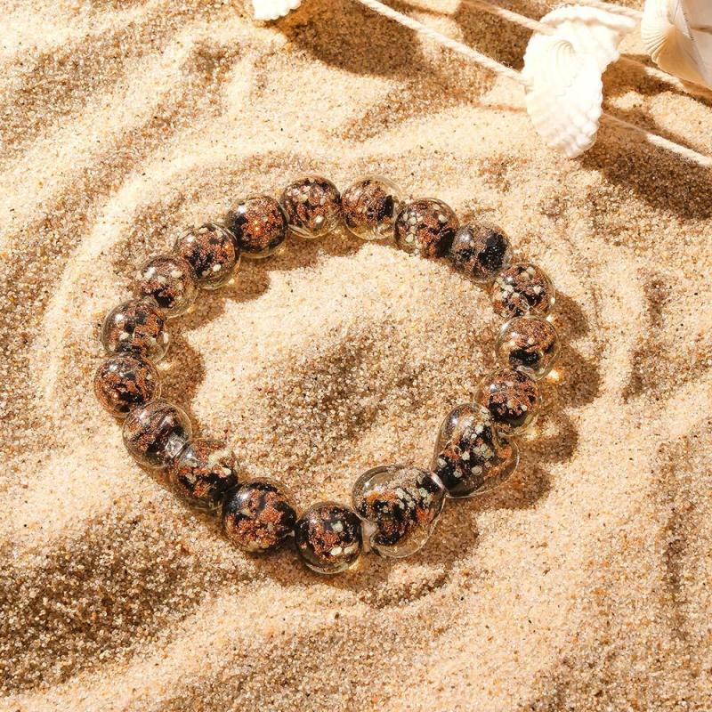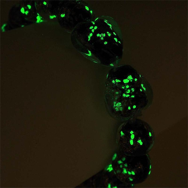 Black Heart-to-Heart Firefly Glass Stretch Beaded Bracelet Glow in the Dark Luminous Bracelet