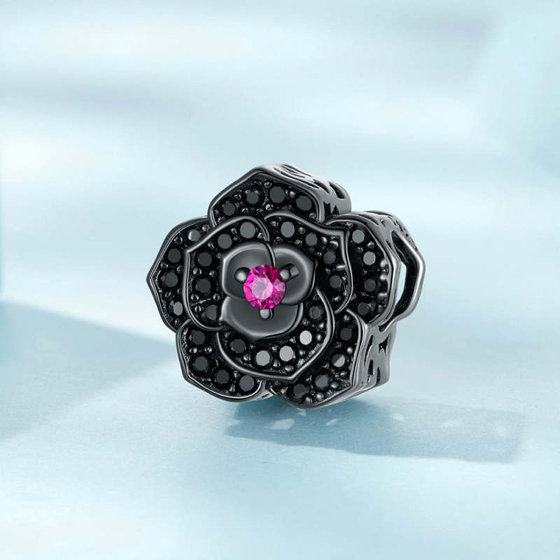 Black Rose Pink Zircon Charm Silver