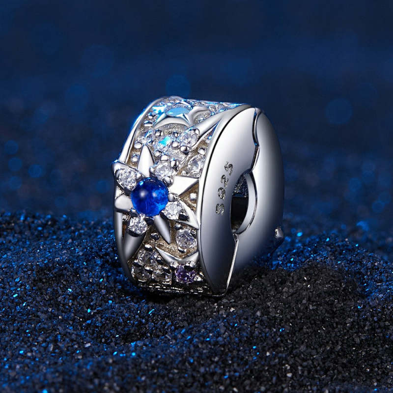 Blue Diamond Stars Stopper Charm Spacer Charm Silver
