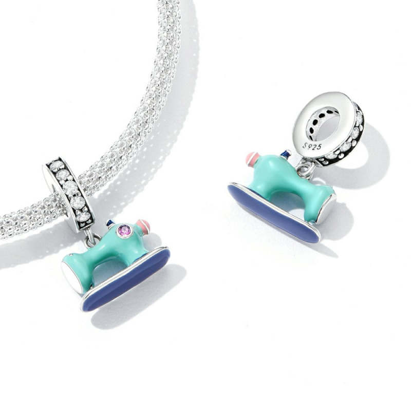 Blue Sewing Machine Dangle Charm Silver