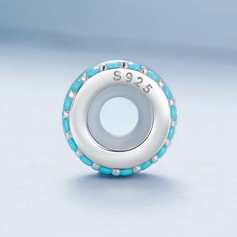 Blue Zircon Stopper Charm Spacer Charm Silver