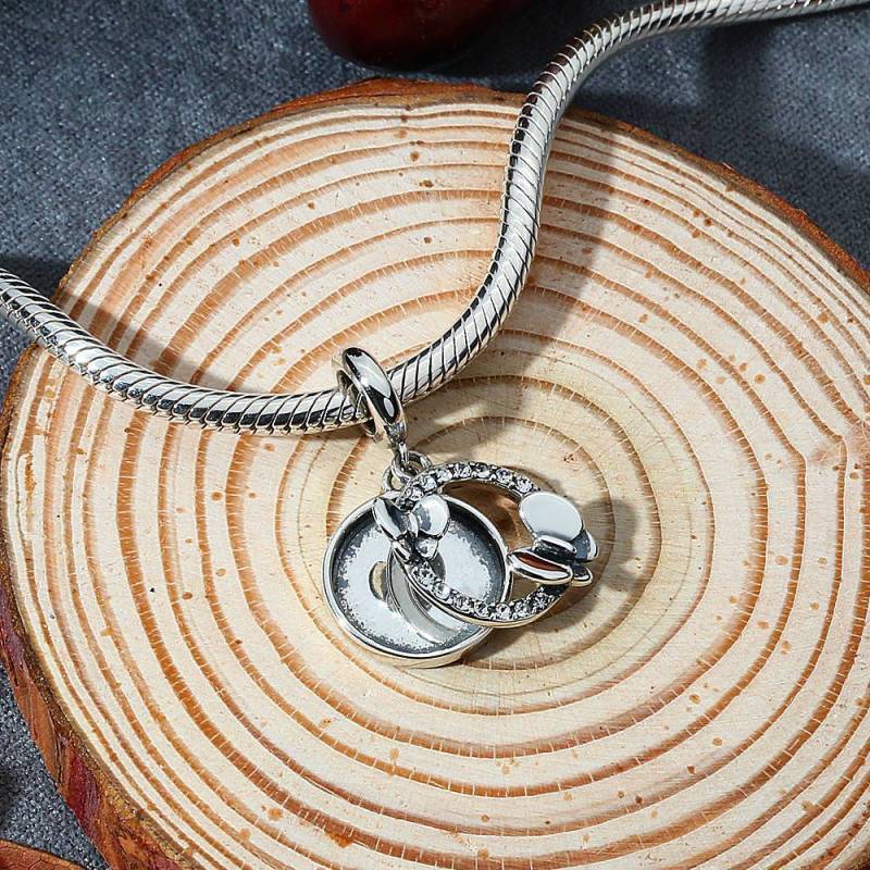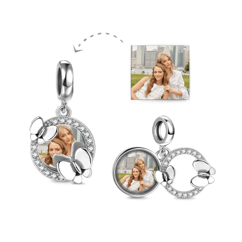 Pave CZ Photo Charm with Butterflies Silver