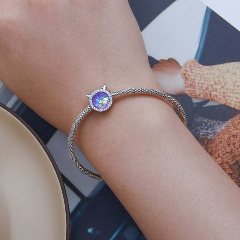 Cat Head Fish Scales Purple Gradient Charm Silver