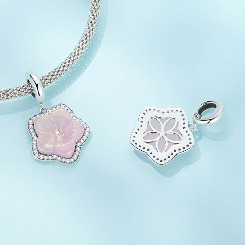Cherry Blossoms Pink Glass Dangle Charm Silver