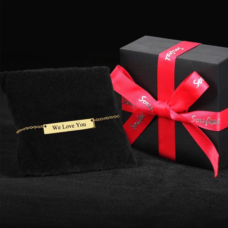 Children's Engraved Bar Bracelet 14K Gold Plated - Length Adjustable