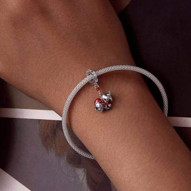 Christmas Cat Pendant Dangle Charm Silver Christmas Gifts
