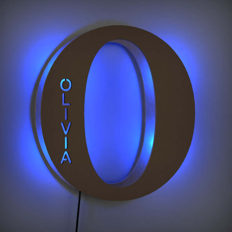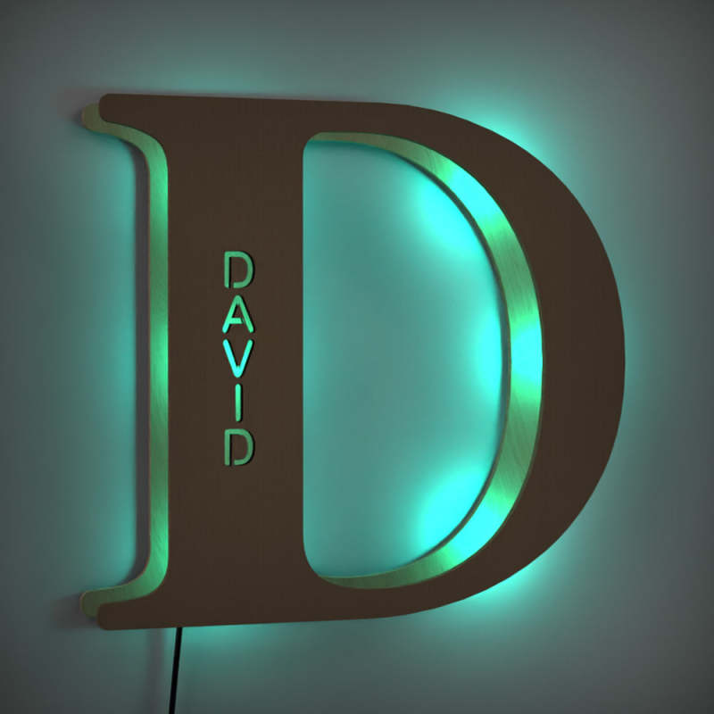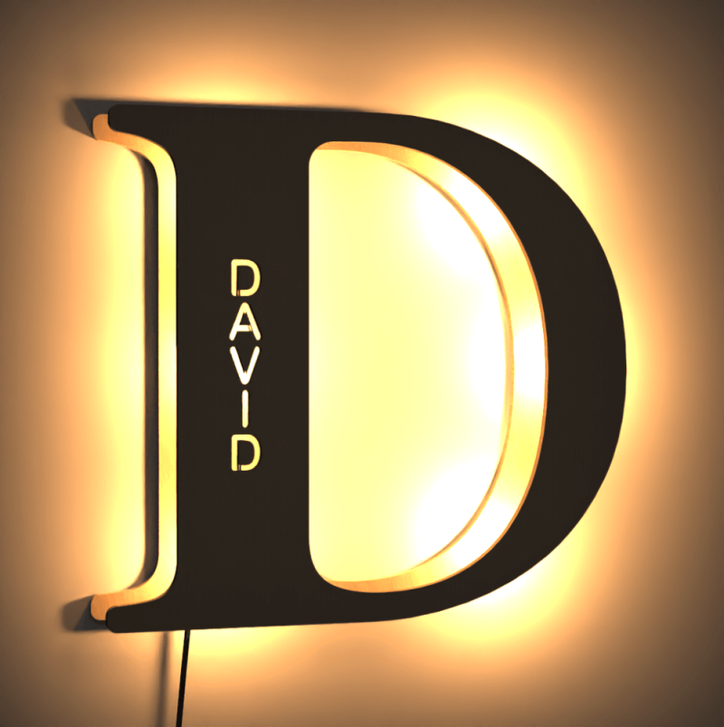 - This lovely and creative initial lamp features your name in cutouts and can be attached to the wall.