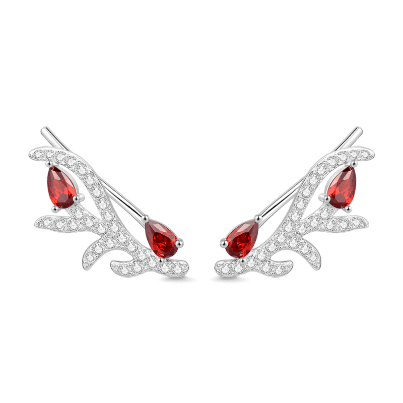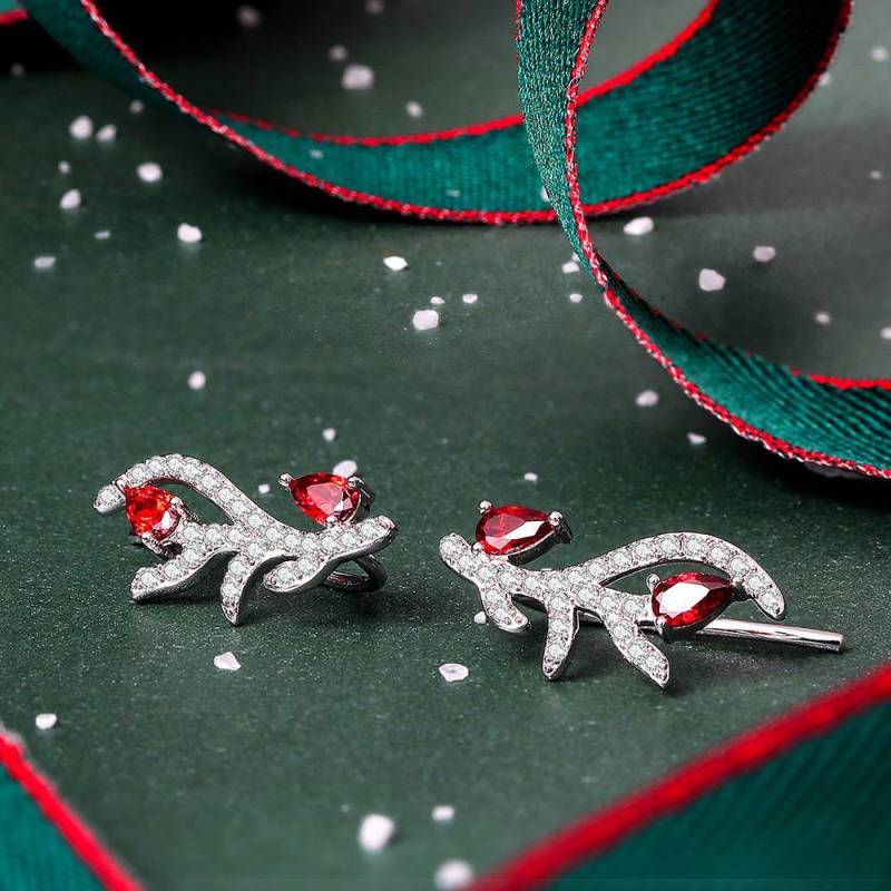 crystal Crystal Christmas Antler Stud Earrings Platinum Plated Silver