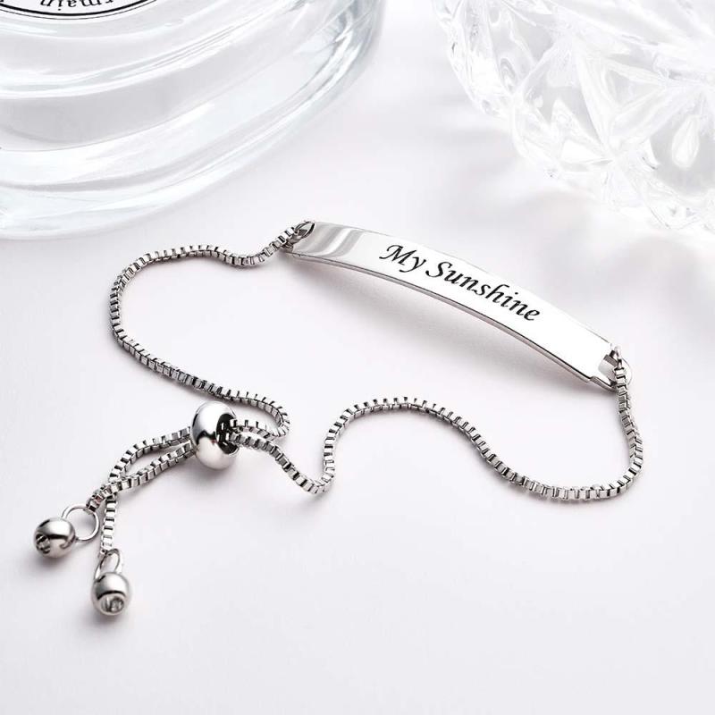 Your bracelet is crafted in a stainless steel which we love here, t as it is such a durable metal and does not fade or tarnish like other metals.This bracelet adjusts by simply sliding the stainless steel ball bead so its perfect for the small or larger wrists!We will wrap your bracelet in a velvet pouch and send it on its journey packaged with love and care.Using the adjustable bead, you can ensure you have a great fit so perfect for the small or large wrists!