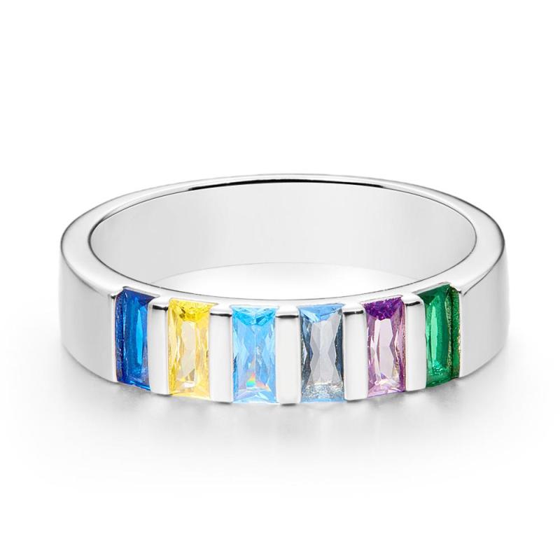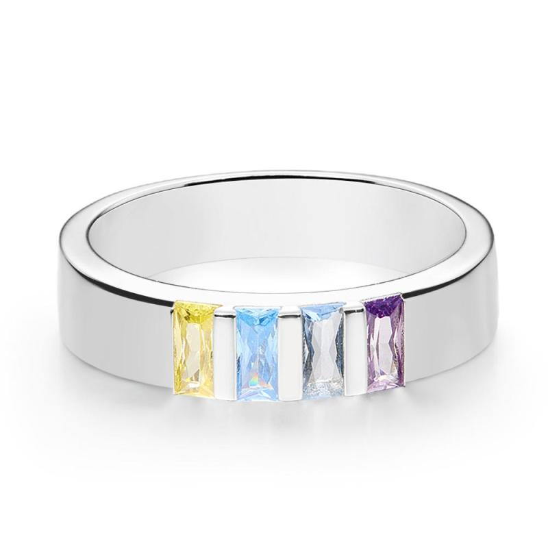 Custom Baguette Birthstone Ring Personalized Family Ring Gift For Her