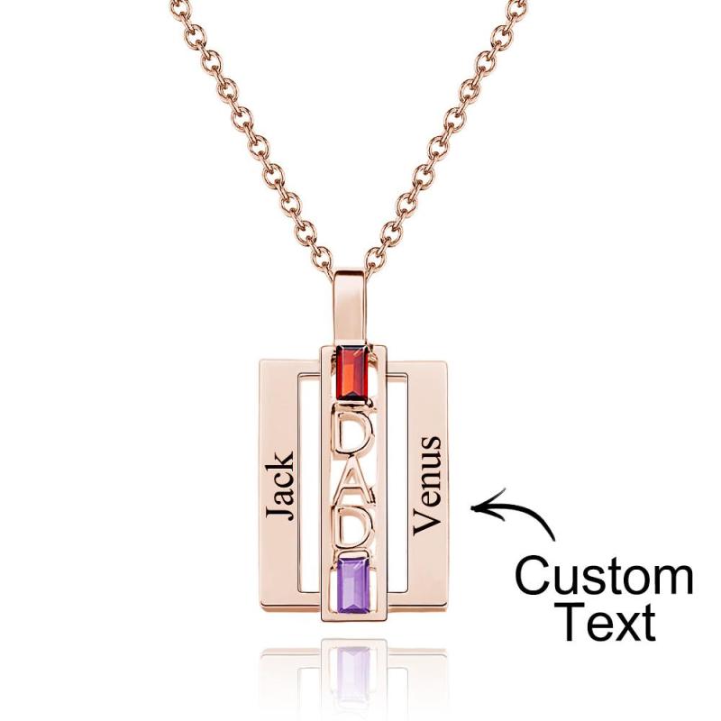 Engravable necklaces are a fun and fashionable way to personalize your look. Family is forever with this modern Dad necklace that he will wear close to his heart. Customize by selecting 2 baguette gemstones that represent family members or simply pick his favorite colors. Personalize by engraving the names of loved ones, a date, or a special message.