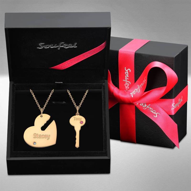 Add something extra special to your jewelry box with Soufeel engravable necklaces. There are a plethora of gorgeous designs that can be customized with a name, two names, or even inspirational words that you love. Soufeel provides affordable engravable jewelry that won’t break the bank. In addition, these pieces make for very thoughtful and appreciated gifts for friends and family. Give them to someone celebrating a birthday, graduation, baby shower, or anniversary. The finishes are beautifully polished so that the shine that comes off of them is very intense. Engraved Couple Necklace with Heart and Key, Name Necklace Rose Gold Plated.