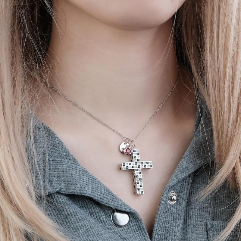 Custom Birthstone Letter Necklace Checkered Flag Cross Unique Gifts