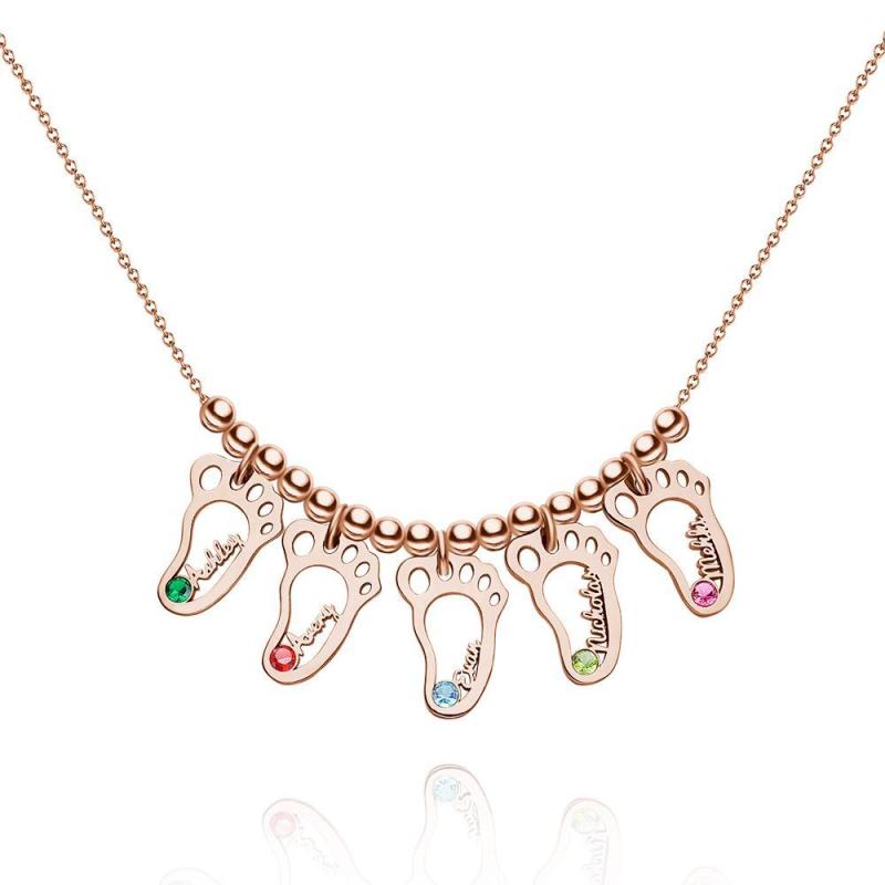 Custom Birthstone Necklace with Names Unique Design Elegant Necklace Rose Gold Plated Silver (1-6 Feet)