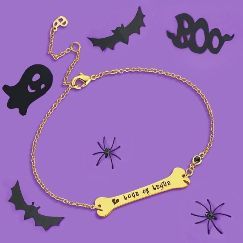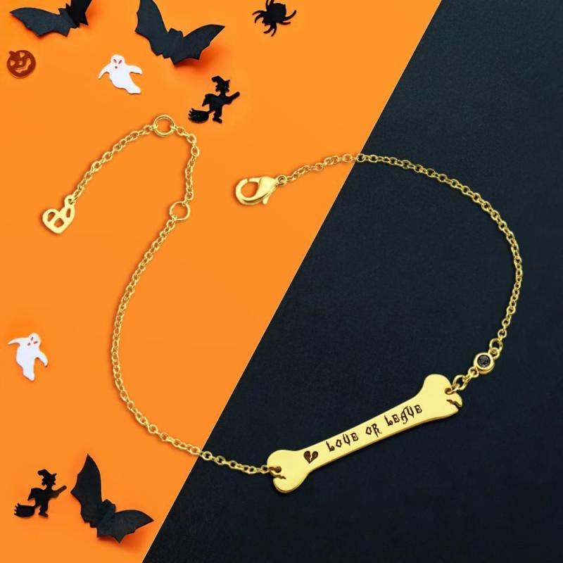 Custom Bracelet Gifts Bone Bar Bracelet with Broken Heart Memorial Gifts 14k Gold Plated