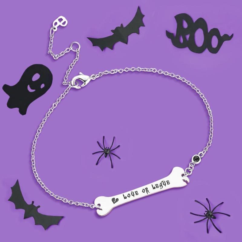 Custom Bracelet Gifts Bone Bar Bracelet with Broken Heart Memorial Gifts Halloween Gifts