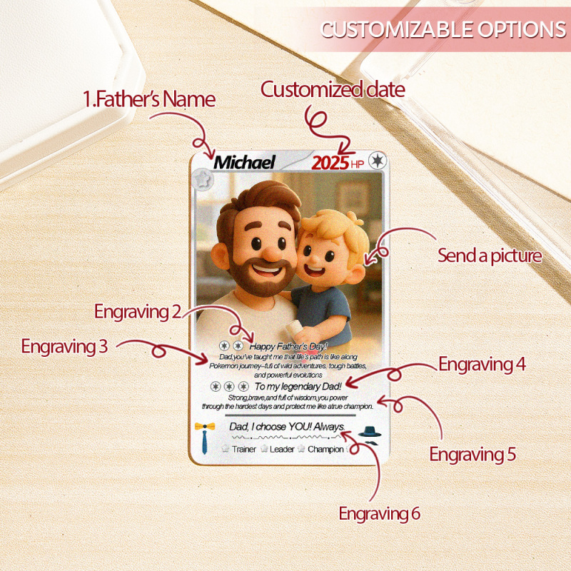 This Father’s Day, surprise Dad with a custom card. Whether he’s a lifelong fan or just your personal hero, this one-of-a-kind card captures his greatness in true Trainer style.