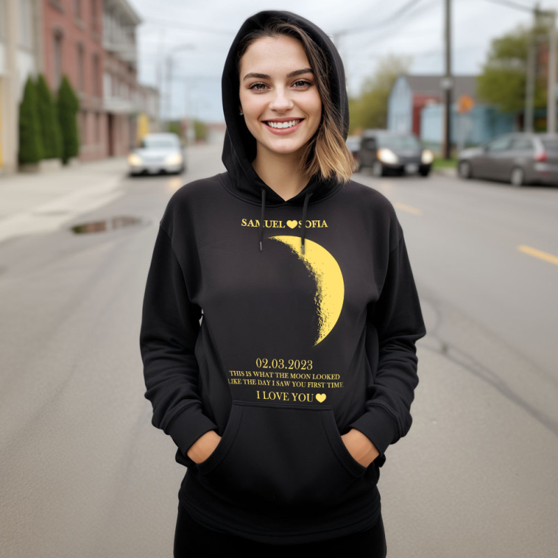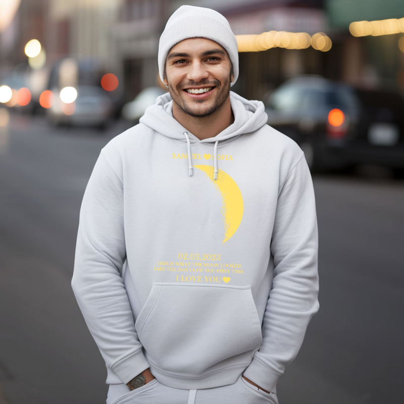 Detailed design: The real moon phase (Handmade just for you) Comfortable hood, split kangaroo pocket, the drawstring can be easily adjusted.