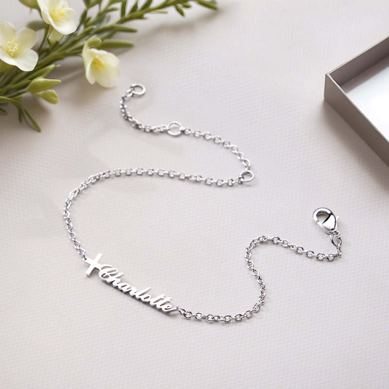 Crafted with care and attention to detail, this bracelet is not just a piece of jewelry, but a meaningful symbol of faith and love. Featuring a delicate cross charm and customizable with a name of your choice, it serves as a personal reminder of one's spiritual journey and devotion. Made from high-quality materials, this bracelet is designed to be durable and long-lasting, ensuring that it can be cherished for years to come. Whether worn daily as a subtle expression of faith or saved for special occasions, it is sure to be treasured by the recipient.