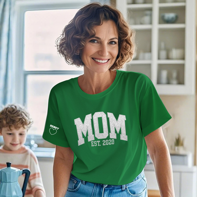 Custom Embroidered Glitter Vinyl MAMA T-shirt Gifts For Mum & Grandma Mother's Day Gifts