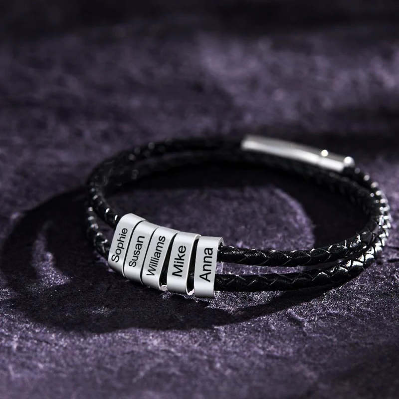 Custom Engraved Bracelet Beads Braided Leather Men's Gifts