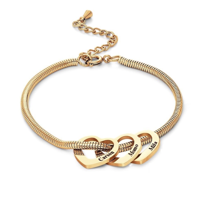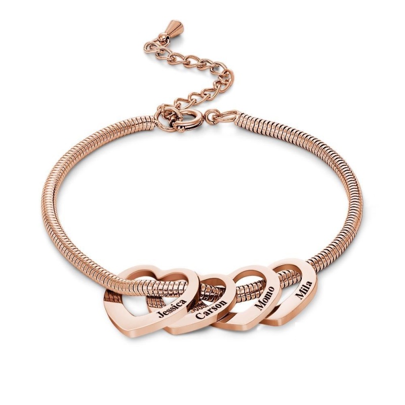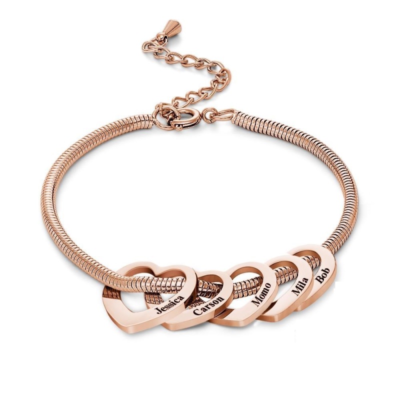 Custom Engraved Bracelet Custom Mom and Kids Name Heart Charms Gifts