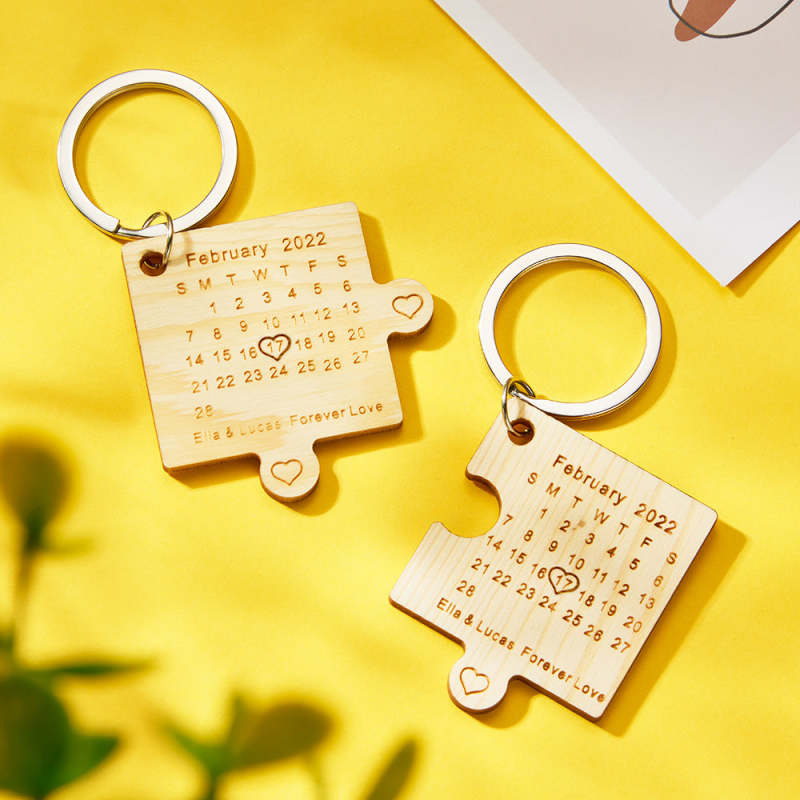 This custom calendar engraved key chain is a pair of jigsaw key chains that you can put together or separate at any time. This key chain you can give to your loved one, your family, friends, etc. You can customize the text on the key chain, and you can also mark your most important dates on the key chain. It's definitely a great gift.