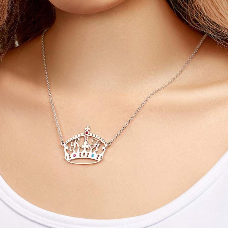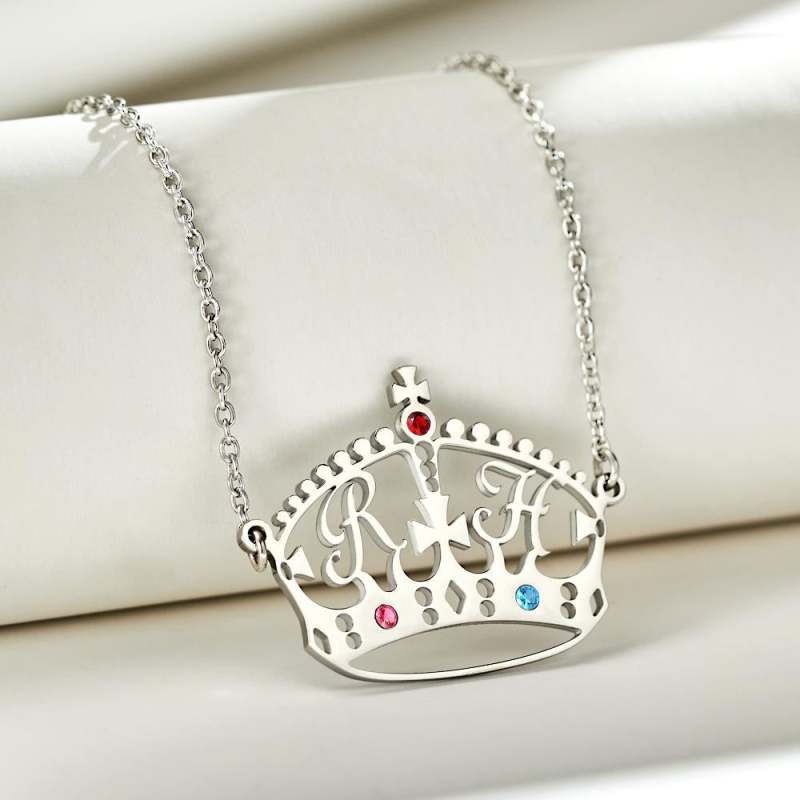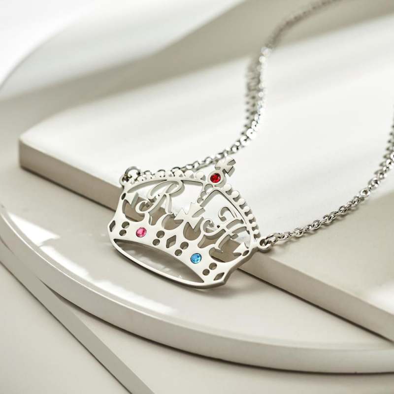 Custom engraved diamond swap necklace with birthstone crown shape gift to her. This necklace can be custom engraved or custom diamond change, you can choose your birthday of the birthday stone customized. You can customize one of these necklaces to give to your lover. I'm sure she will love this gift when she sees it.