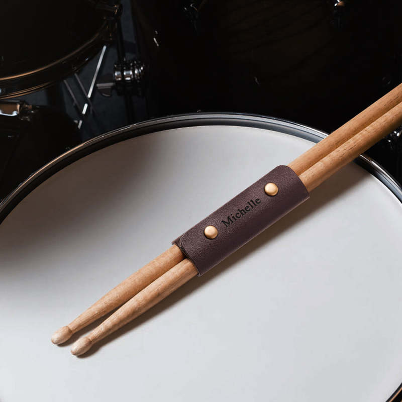 Perfect personalized leather holder for Drumstick. Keep your Drumstick and drum key together safe. Great present for drummers. Get your initials or name stamped into your leather lanyard.