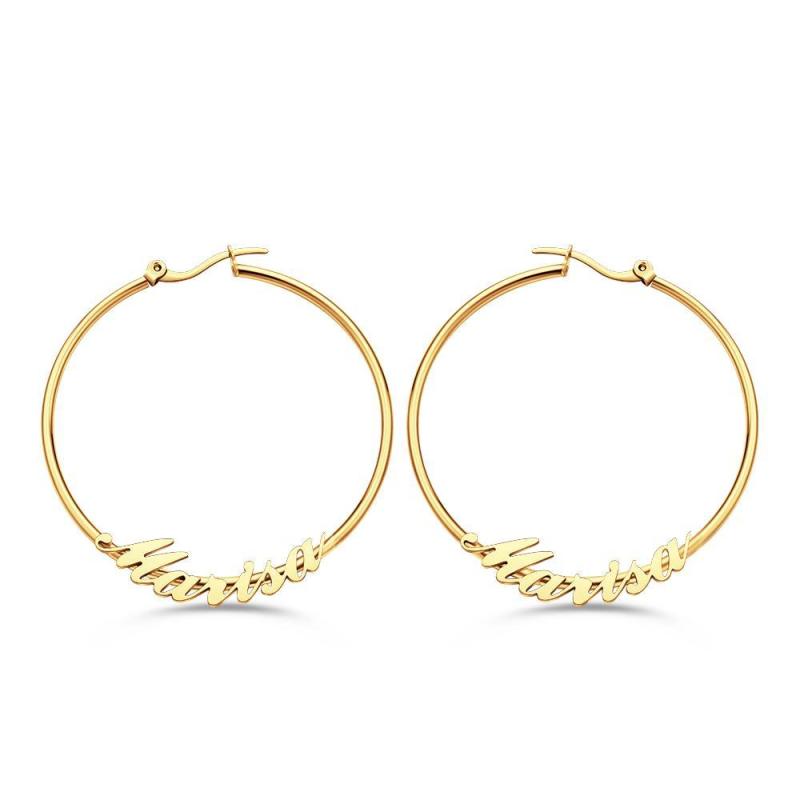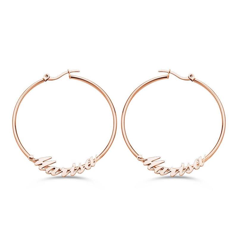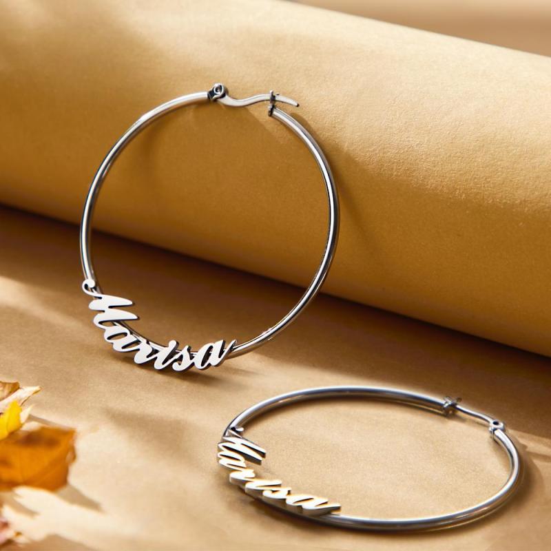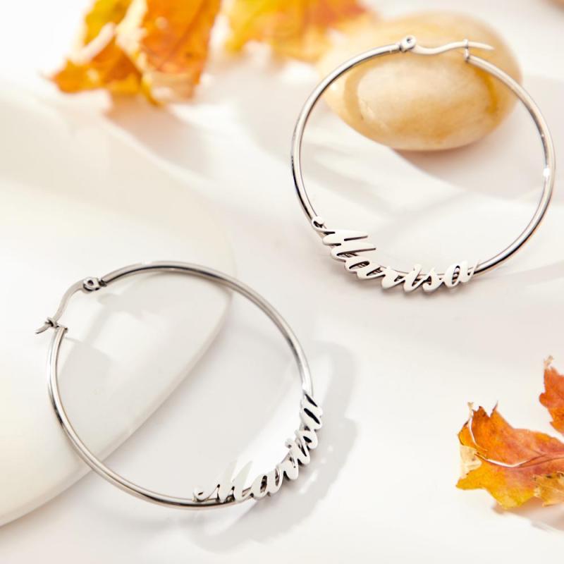 Custom Engraved Earrings Big Hoop Cursive Earrings Gift for Women