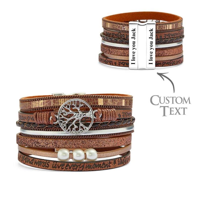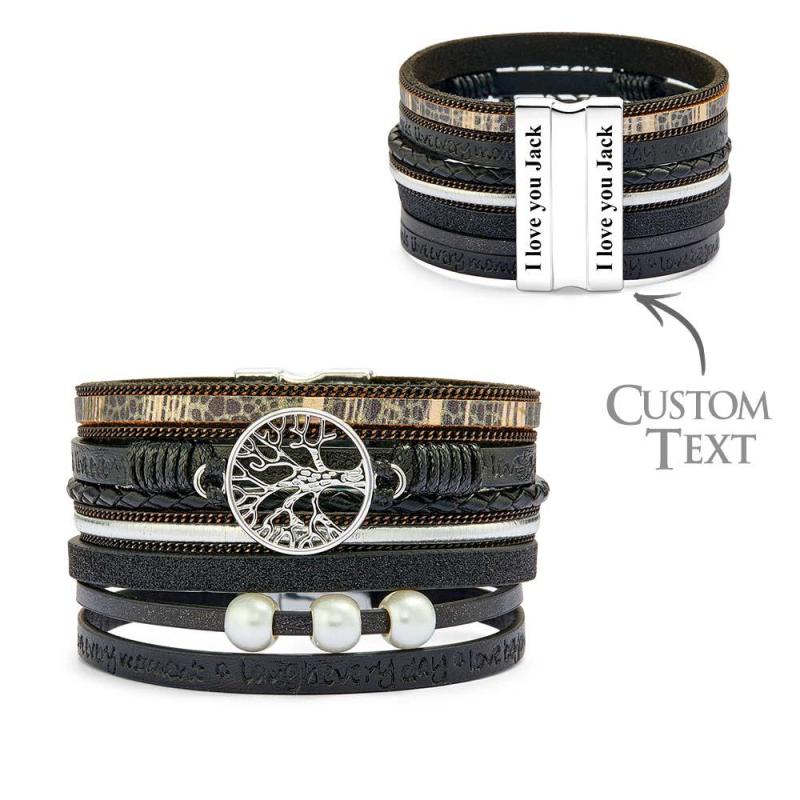 Custom Engraved Inspirational Tree of Life Leather Bracelets for Women