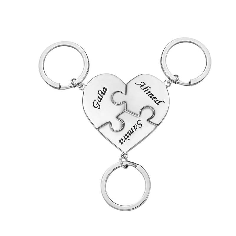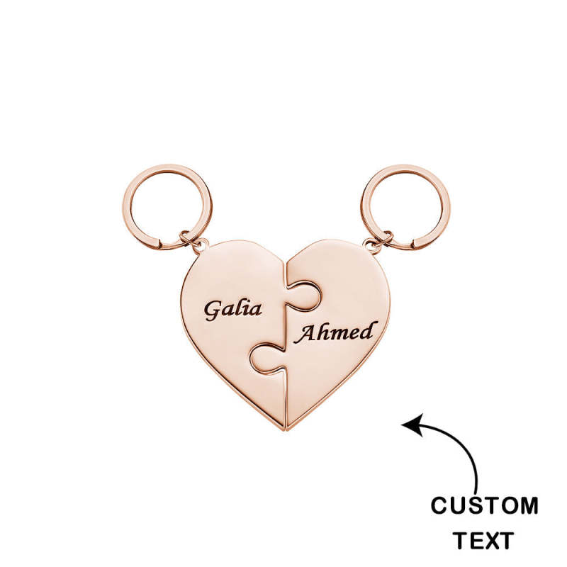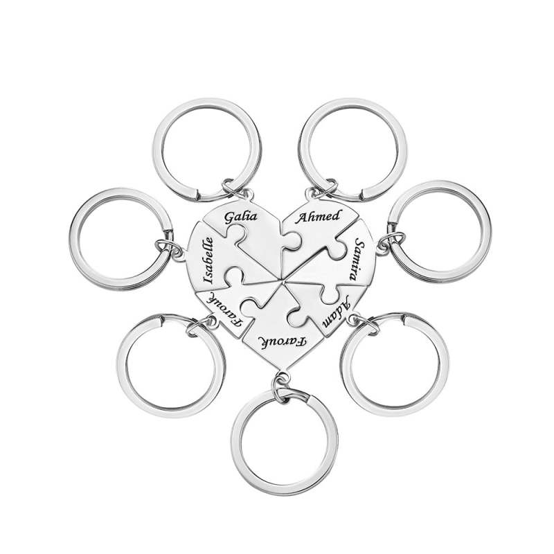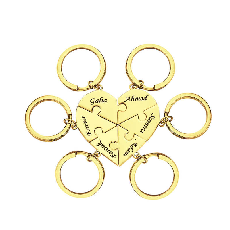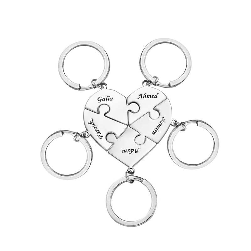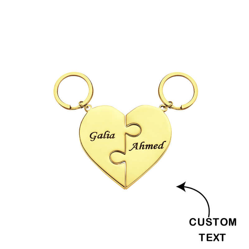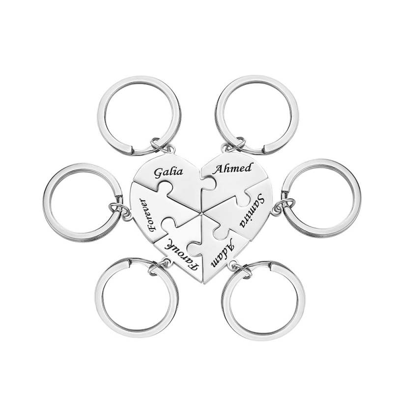 Custom Engraved Keychain Heart-shaped Puzzle Number of Options Creative Gift