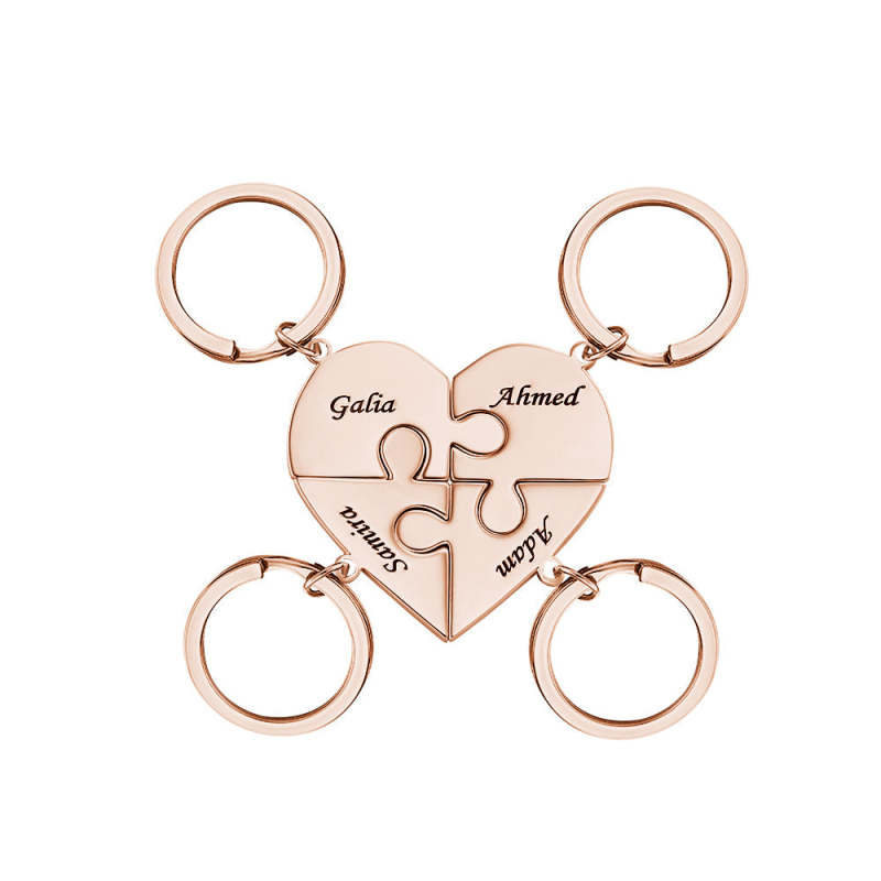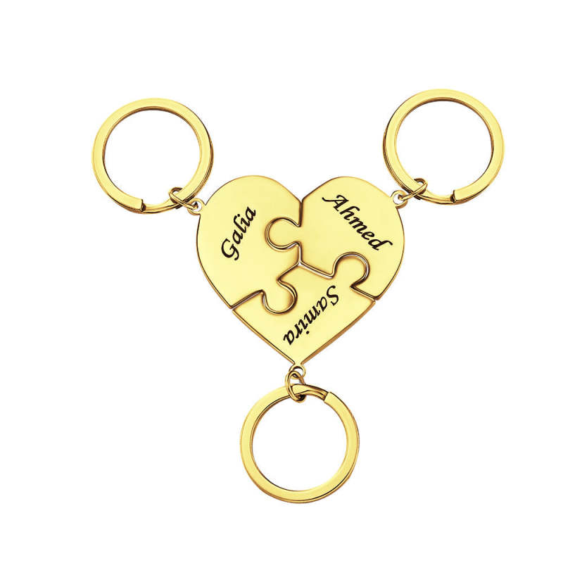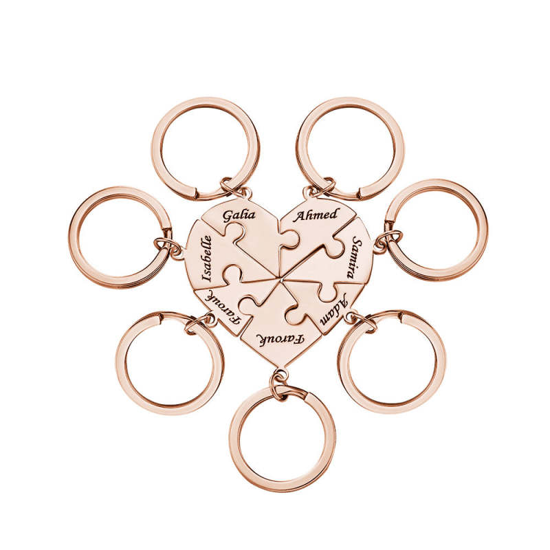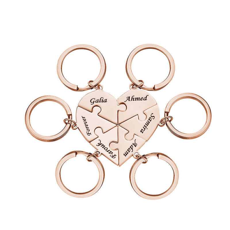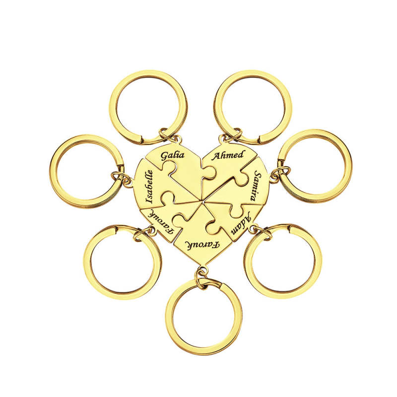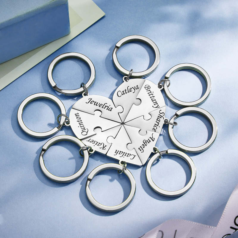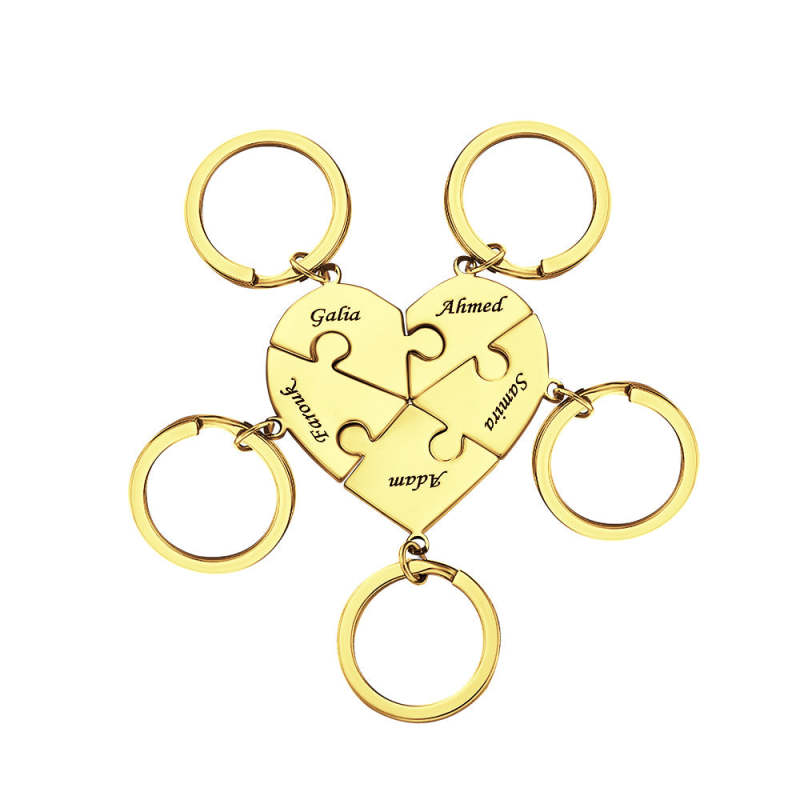 Custom Engraved Keychain Heart-shaped Puzzle Number of Options Creative Gift